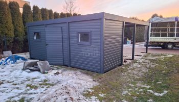 • Dach spad w bok: Blacha trapezowa T35 plus o grubości 0,6-0,7 mm Ciemny grafit antracyt RAL7016