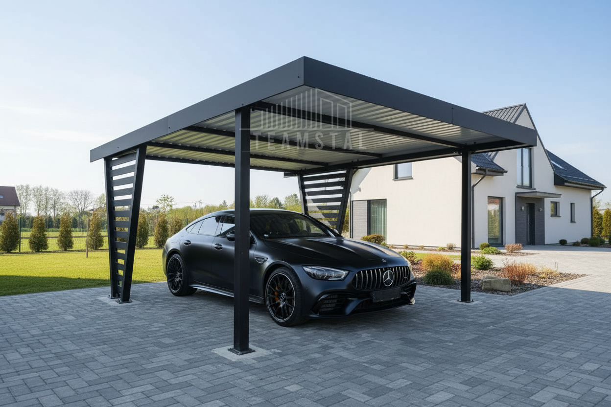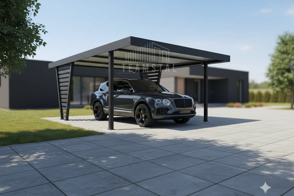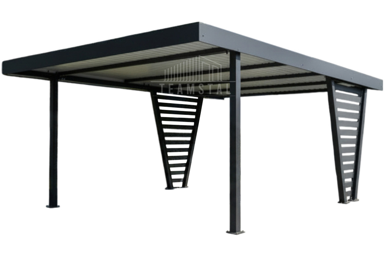 Cała konstrukcja carportu malowana metodą proszkową. Istotną zaleta malowania proszkowego są ochronne właściwości tej techniki. Gwarantuje ona odporność na chemikalia, korozję czy wysoką temperaturę i uszkodzenia mechaniczne