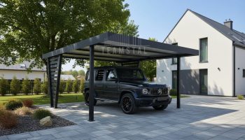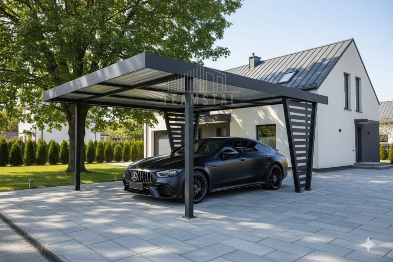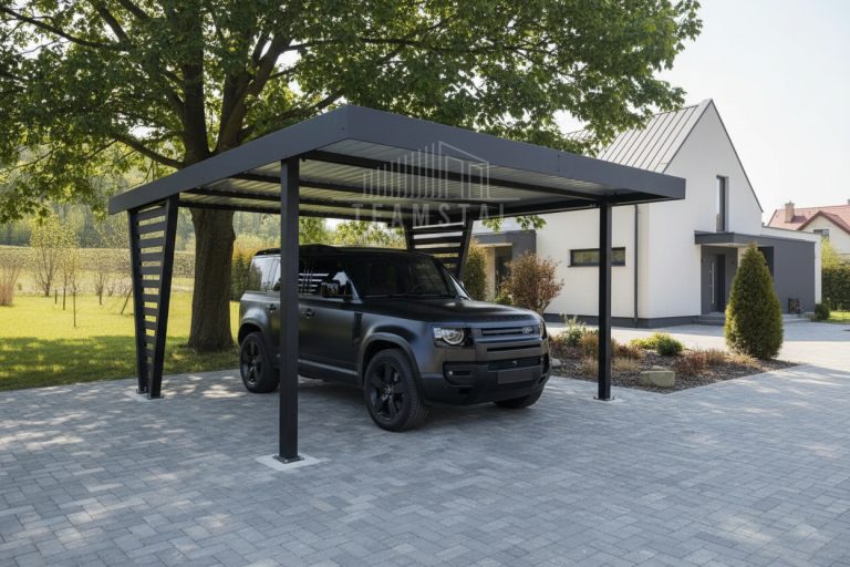 Cała konstrukcja carportu malowana metodą proszkową. Istotną zaleta malowania proszkowego są ochronne właściwości tej techniki. Gwarantuje ona odporność na chemikalia, korozję czy wysoką temperaturę i uszkodzenia mechaniczne