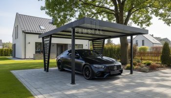 Carport V PREMIUM 4x5m – Wypełnienie panelami – Wiata samochodowa – antracyt TS1262