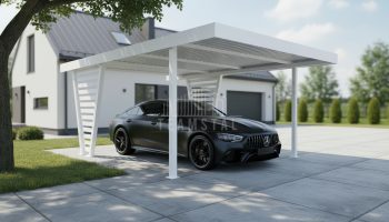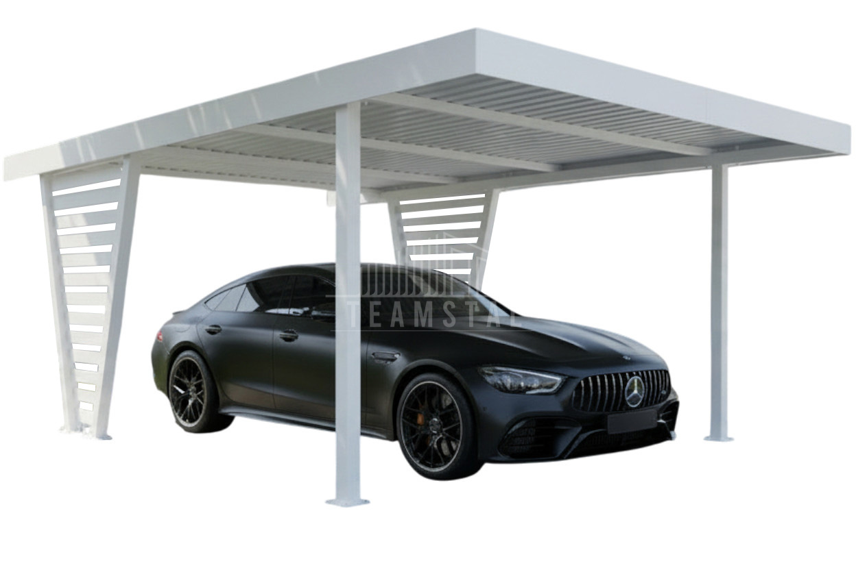 Carport V PREMIUM 4x5m – Wypełnienie panelami – Wiata samochodowa – biały TS1270
