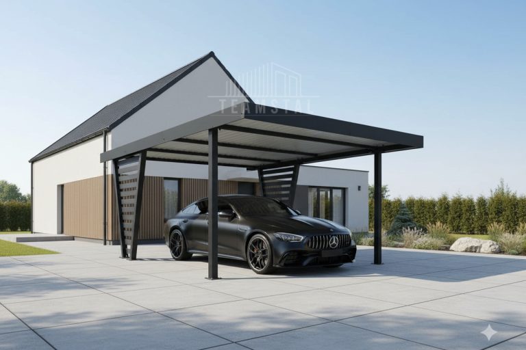 •Cała konstrukcja carportu malowana metodą proszkową