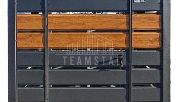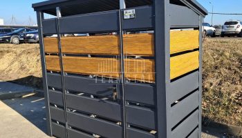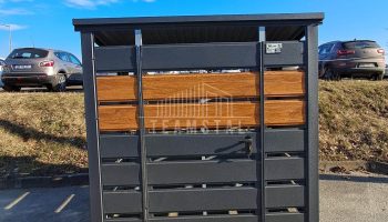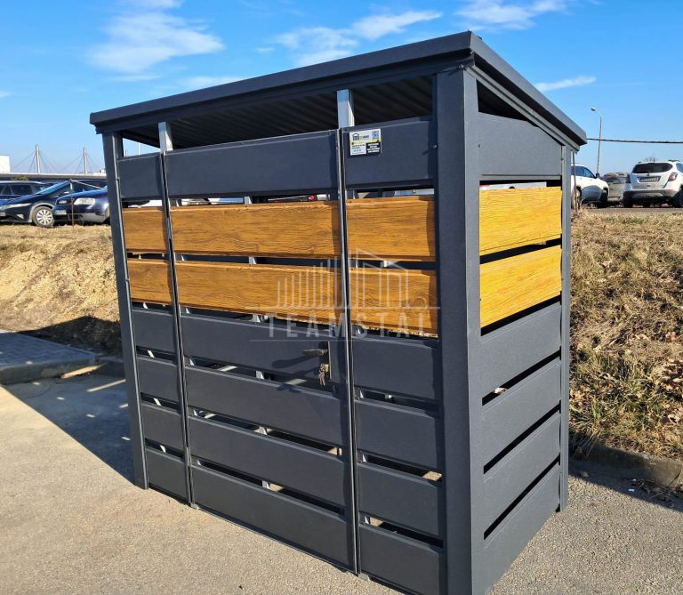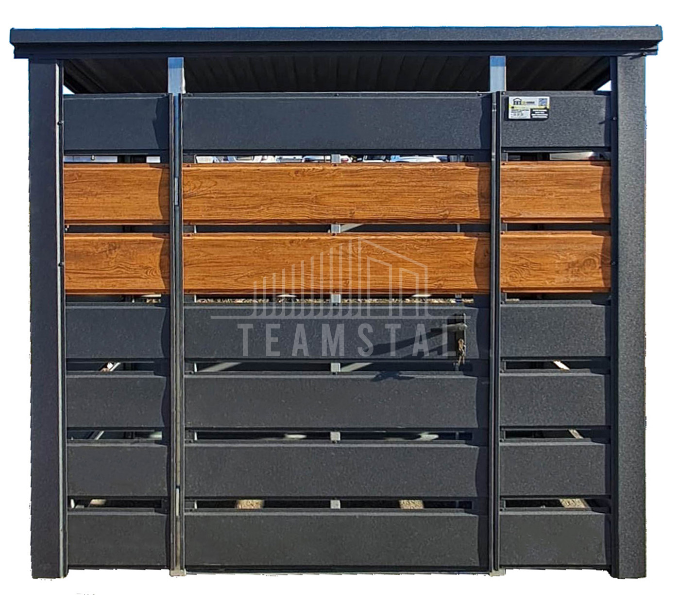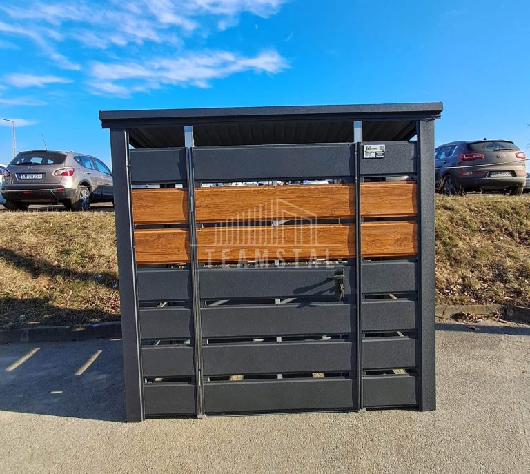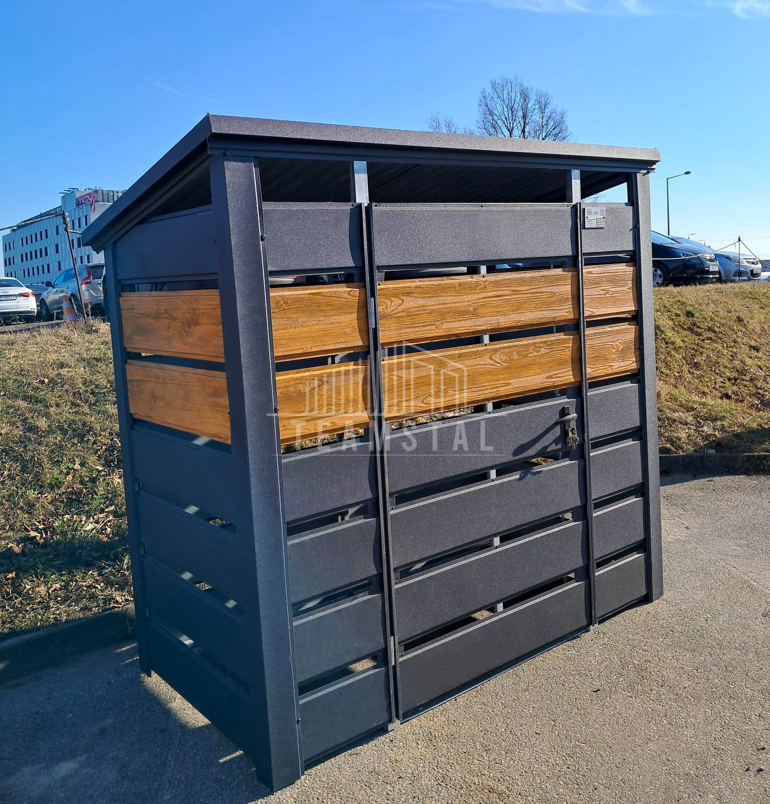 Wiata śmietnikowa 1,5×0,7m Antracyt + jasny orzech – spad w tył TS1106