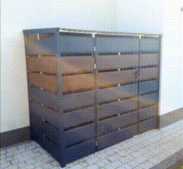 Wiata śmietnikowa spad tył 3×0,7m antracyt + drewnopodobny Schowek ogrodowy TS590