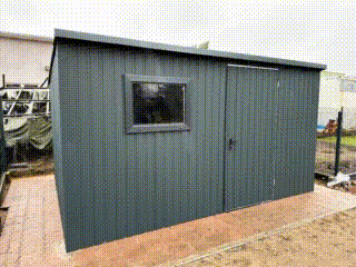 / Domek Ogrodowy – Schowek Blaszany 4×4 – okno – drzwi – Antracyt – dach Spad w tył TS531