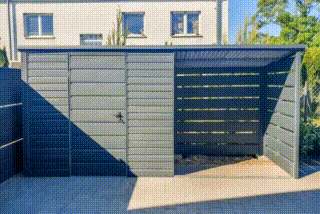 Schowek – Domek Ogrodowy – 2,5×1,5m + Wiata 2,2m – Drzwi – Antracyt – Dach spad w tył TS730