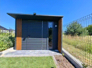 Schowek – domek ogrodowy 3×3 – drzwi – okno – dekor z lameli – dach spad w tył TS1100