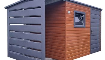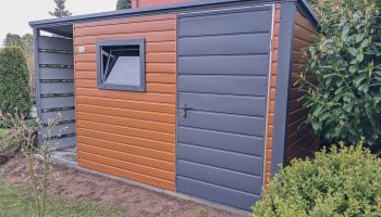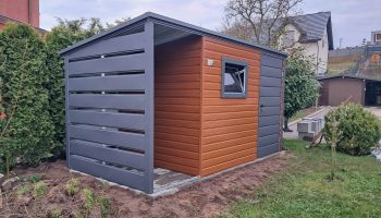 - wiata : 0,5×2 m zabudowana boczna i tylna ściana panelami kolor: antracyt mat 7016
