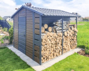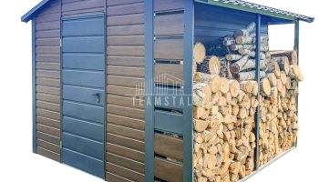 Schowek – Domek Ogrodowy 2,5x3m + Wiata 0,5m – Drewutnia – Ciemny Orzech – Antracyt – Drewnopodobny – Dach Dwuspadowy TS731