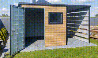 / Schowek – domek ogrodowy 2×2 m + wiata – drzwi – okno – winchester – dach spad w tył TS757