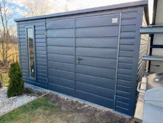 • wiata : 0,5×3,5 m zabudowana przednia i tylna ściana panelami kolor: antracyt mat 7016