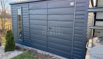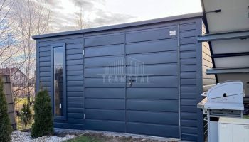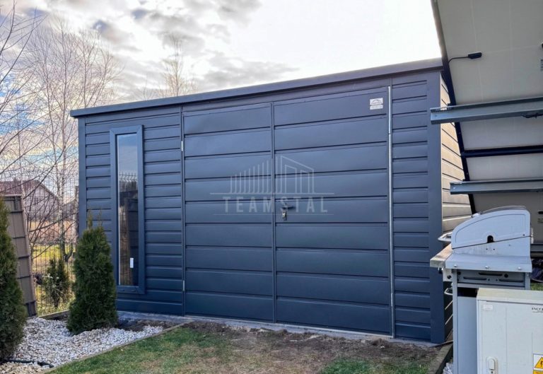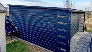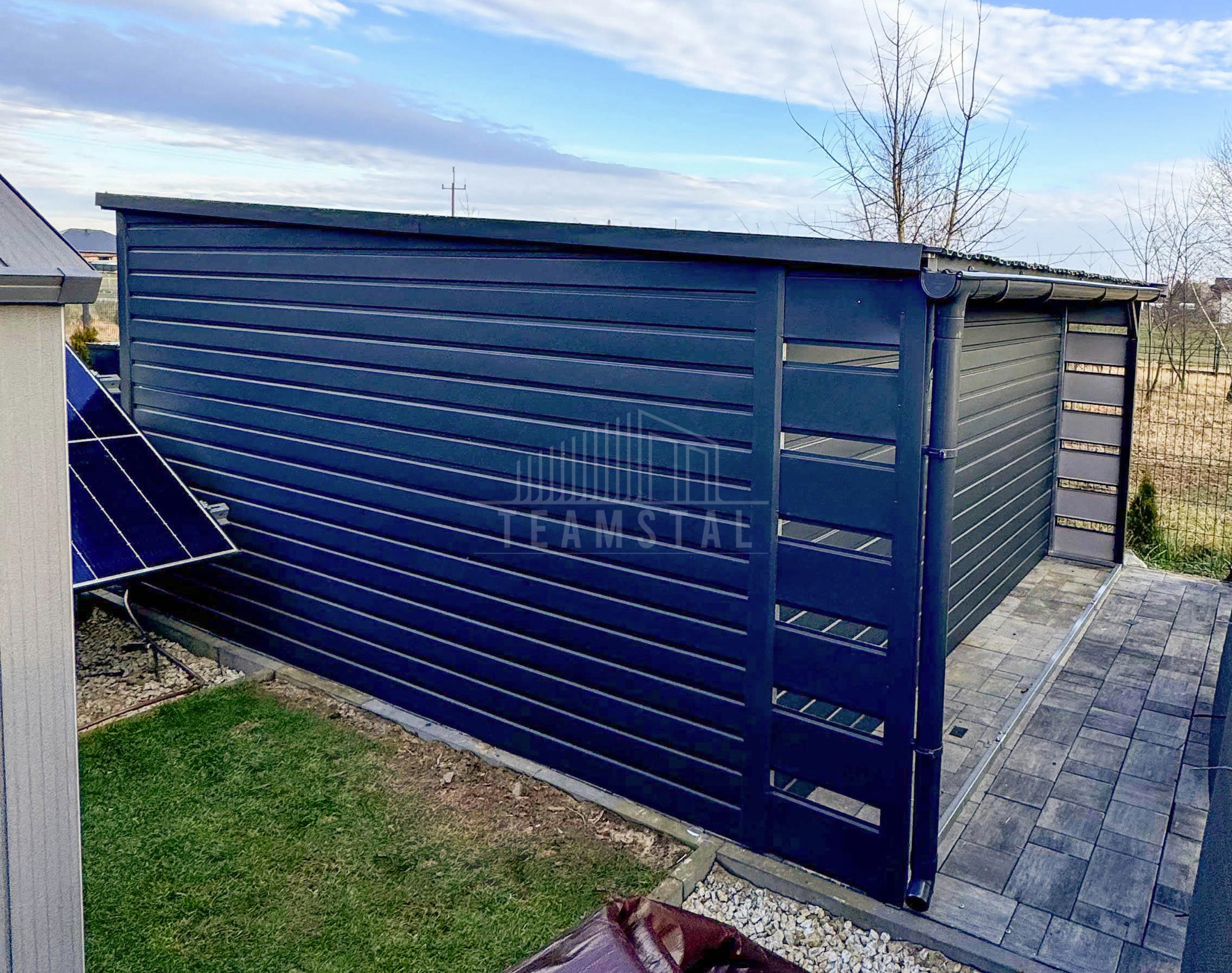 • wiata : 0,5×3,5 m zabudowana przednia i tylna ściana panelami kolor: antracyt mat 7016