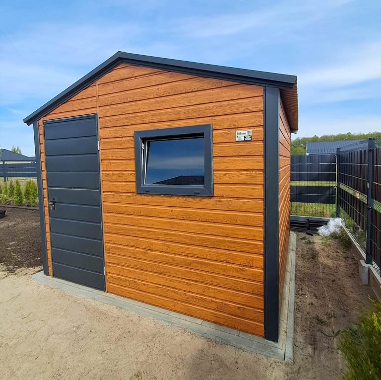 Schowek – domek ogrodowy 3×2,5m – drzwi – 2x okno – jasny orzech – drewnopodobny – dach dwuspadowy TS1075