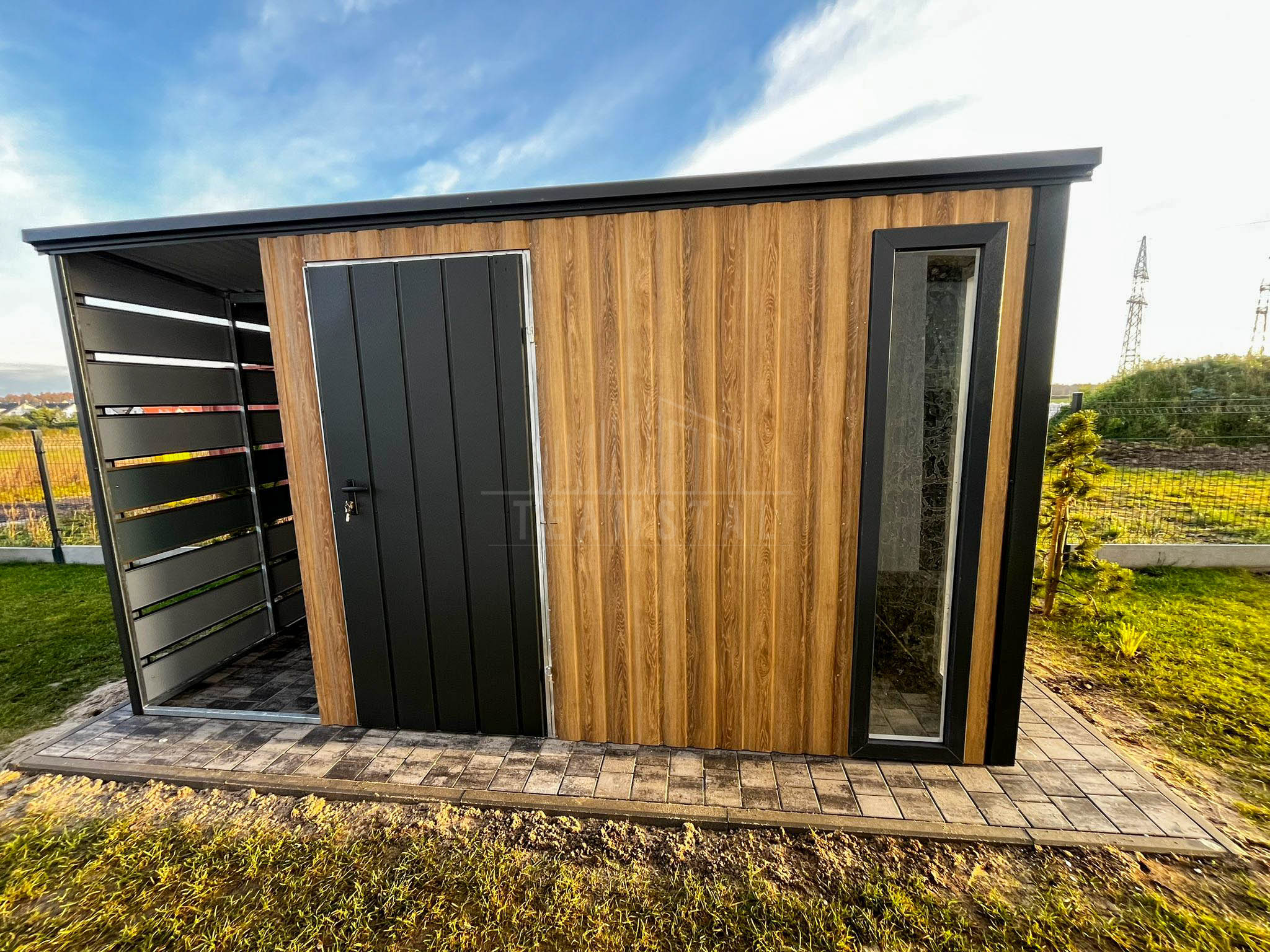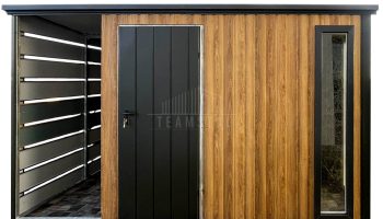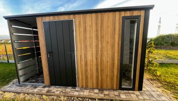 • wiata 0,5×2,5m zabudowana panelami w części tylnej i bocznej kolor : antracyt mat 7016