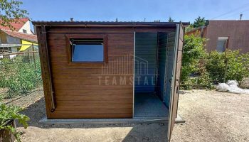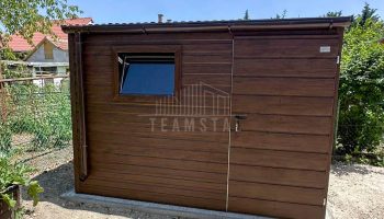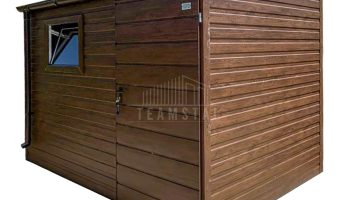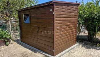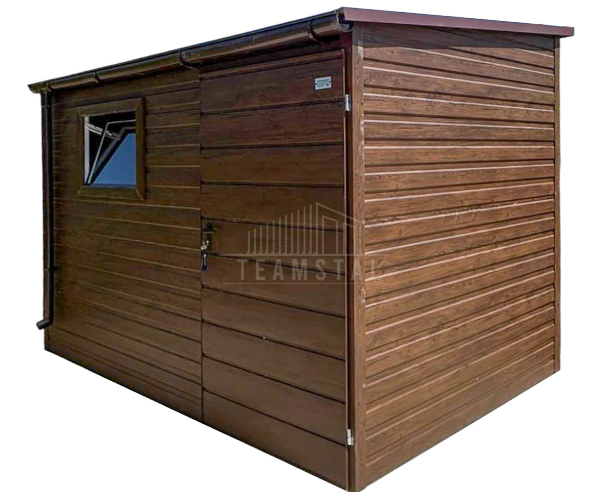 Schowek – domek ogrodowy 3x2m – drzwi – okno – ciemny orzech – dach spad w przód – rynna TS1129