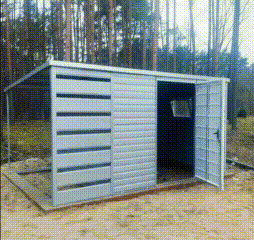 - wiata: 1 x 3 m umiejscowiona z lewej strony garażu, zabudowana panelami z przodu kolor jasny srebrny RAL9006