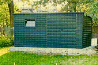 Schowek – Domek Ogrodowy 4,5×2,5m – Brama Dwuskrzydłowa – Okno – Antracyt – Dach spad w tył TS701