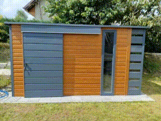 - wiata : 0,5×2,5 m zabudowana przednia i tylna ściana panelami kolor: antracyt mat 7016