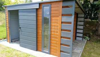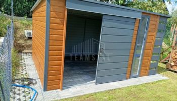 - wiata : 0,5×2,5 m zabudowana przednia i tylna ściana panelami kolor: antracyt mat 7016