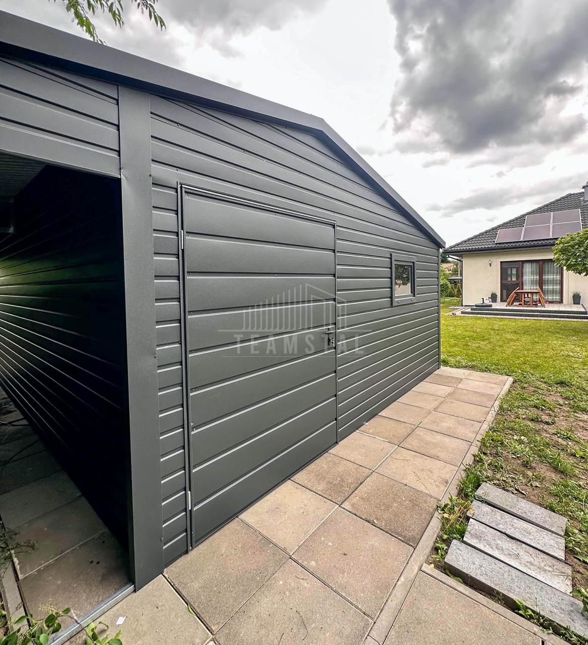 • dach : Dwuspadowy blachodachówka kolor : antracyt mat 7016