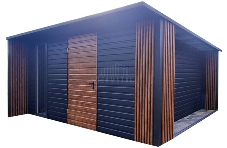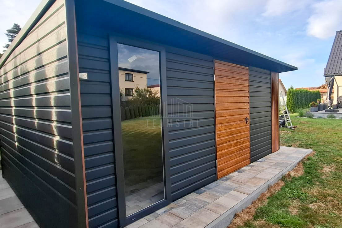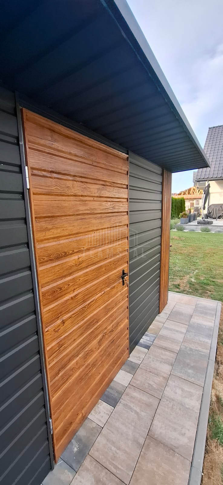 • dach : spad w tył kolor : antracyt mat 7016 z podbitką o wypuście 50 cm