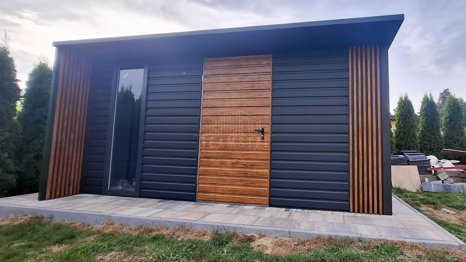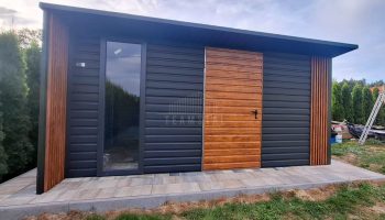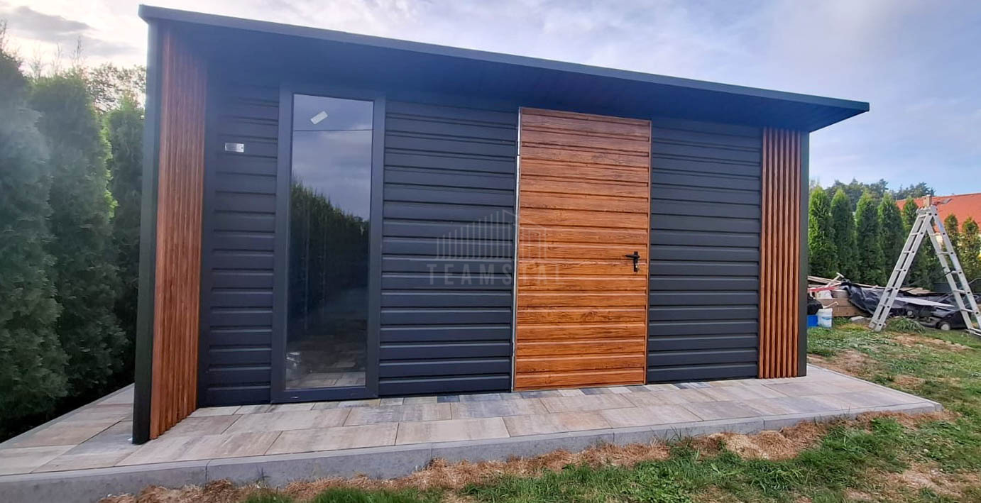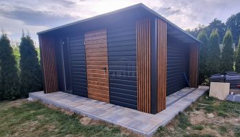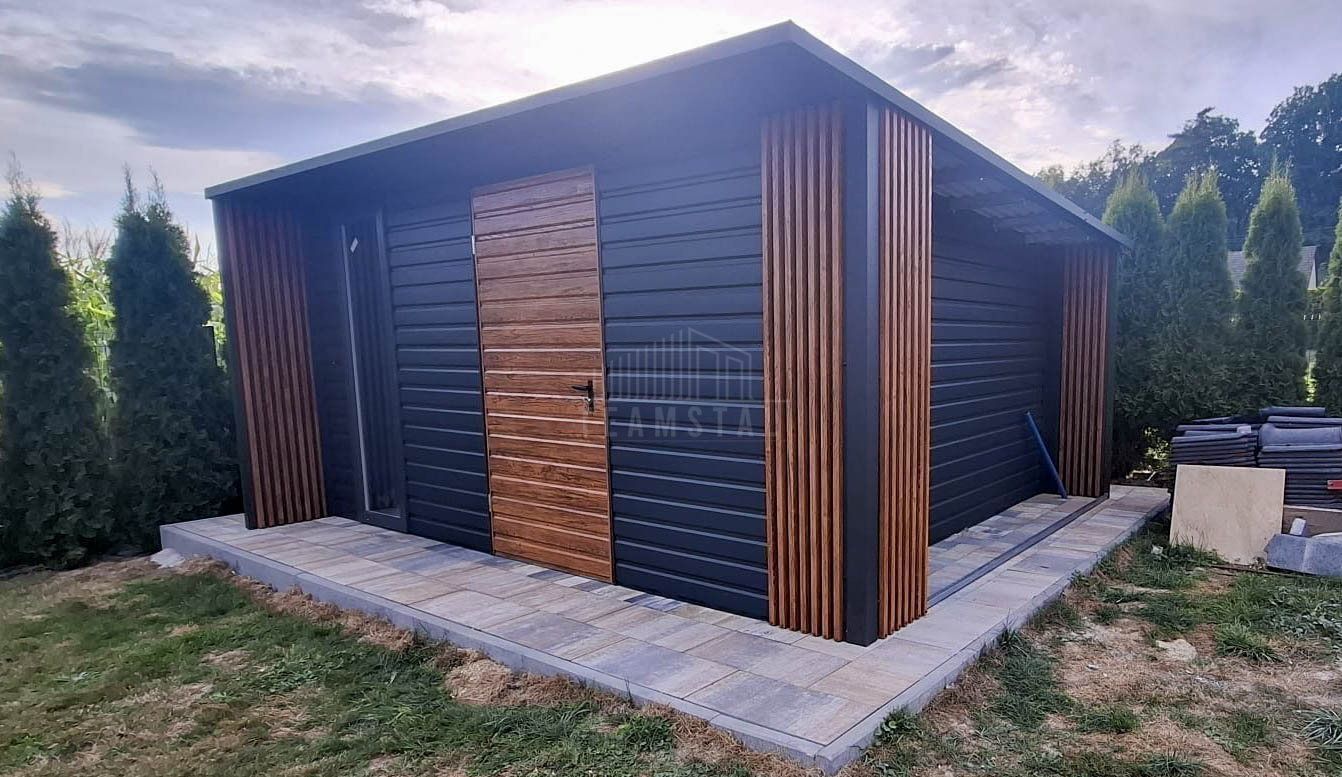 • wiata: 0,5×4 zabudowana dekorem z lameli na przedniej i tylnej ścianie