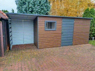 • wiata 1,5×1,5m boczna ściana zabudowana panelami , tylna ściana zabudowana blachą kolor Ciemny Grafit Antracyt RAL 7016
