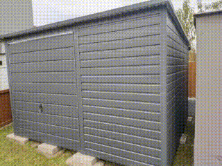 Schowek – Garaż – Domek ogrodowy – 2,5×2,5 Brama uchylna – Antracyt – rynny – dach spad w tył TS851