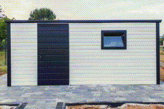 Schowek – Ogrodowy 5×3,5 – Drzwi – 2x Okno – Biały – Czarny – spad w Tył TS724