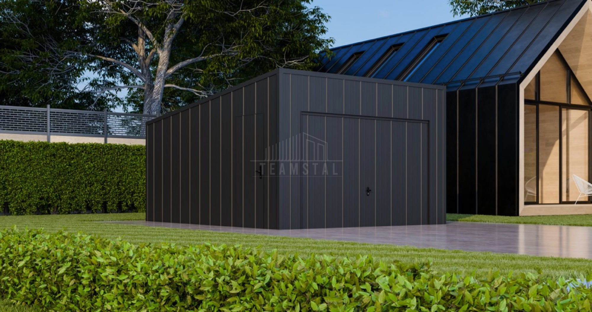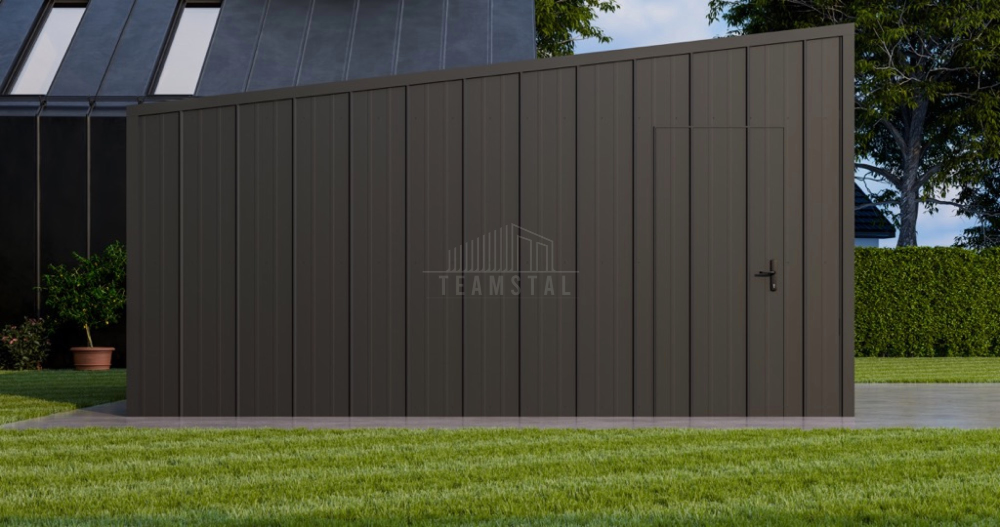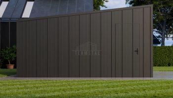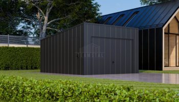 • dach: spad w tył, pokryty blachą na rąbek, kolor: antracyt mat 7016
