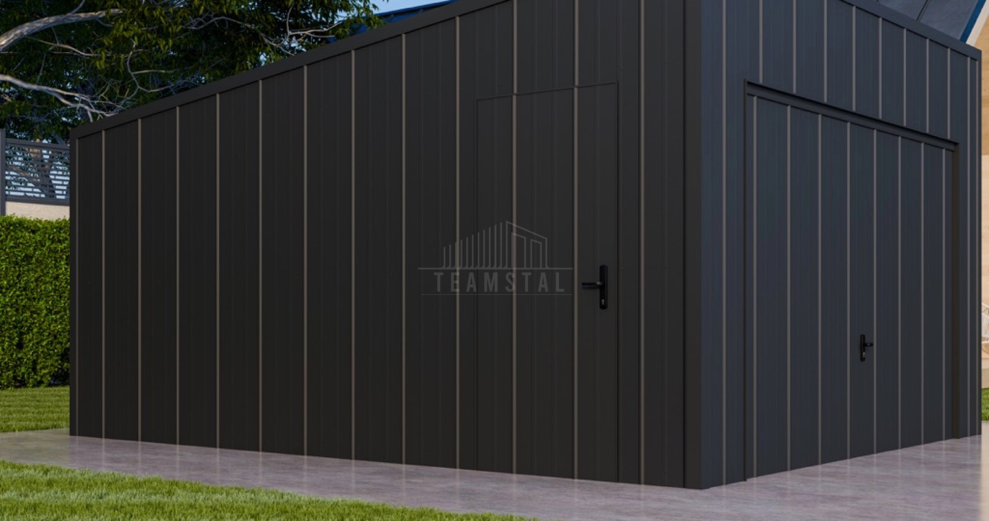 • ściany z blachy na rąbek, kolor: antracyt mat 7016