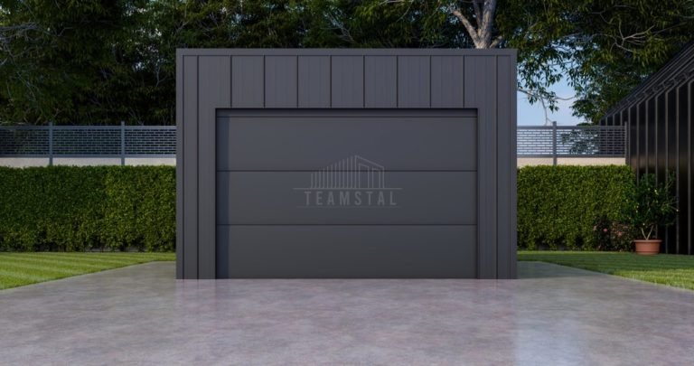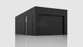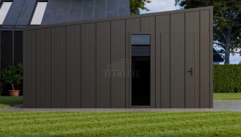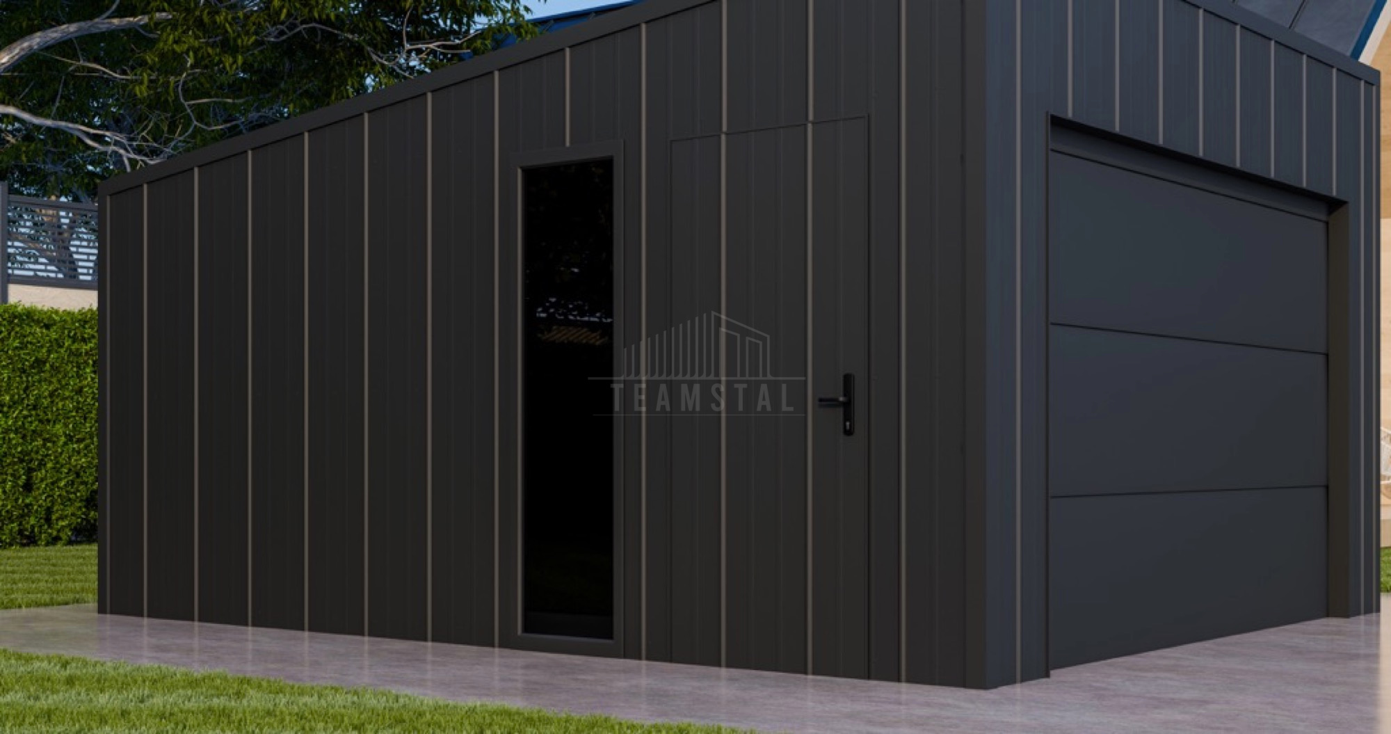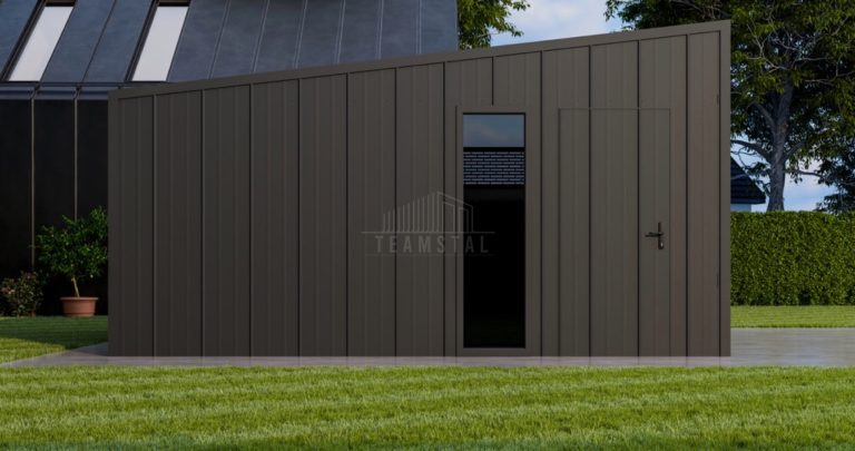 • dach: spad w tył, pokryty blachą na rąbek, kolor: antracyt mat 7016