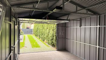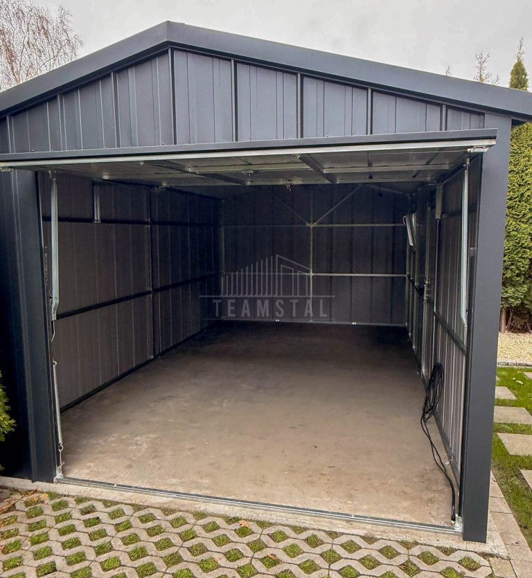 • brama uchylna z blachy na rąbek kolor : antracyt mat 7016