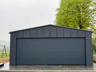 Garaż blaszany Premium 6×5,8 – Brama segmntowa – drzwi – okno – rynny – antracyt – Blacha na Rąbek – dach dwuspadowy TS1095