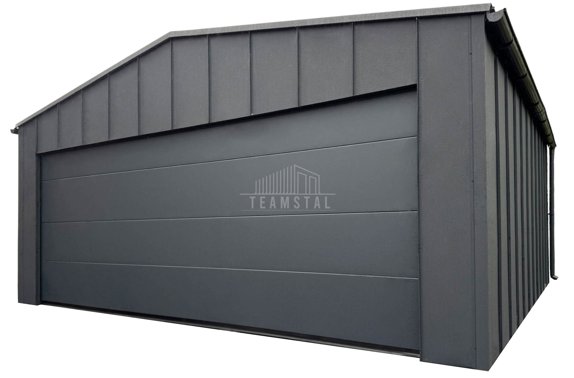 • dach: dwuspadowy, pokryty blachą na rąbek, kolor: antracyt mat 7016