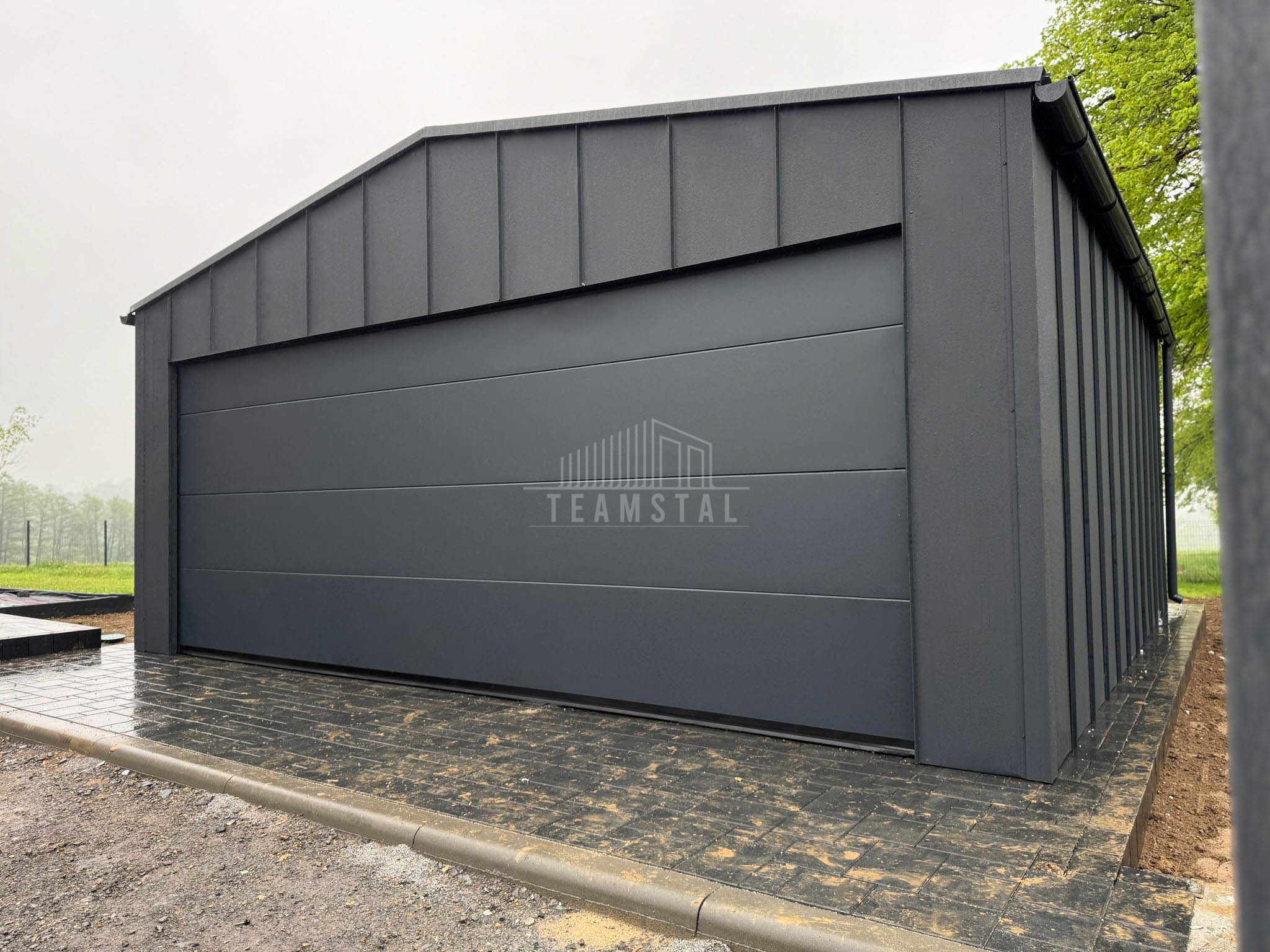 • ściany z blachy na rąbek, kolor: antracyt mat 7016