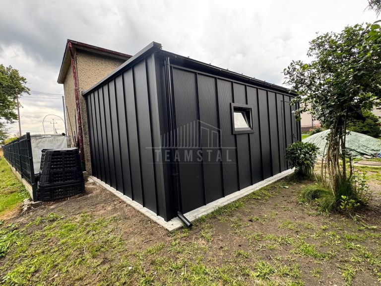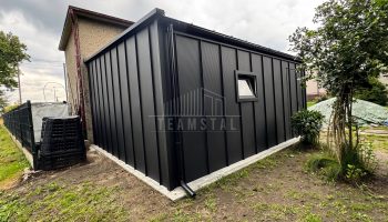 - dach : spad w lewo kolor : czarny blacha na rąbek