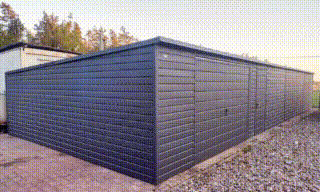 / GARAŻ BLASZANY 15m x 6m – spad tył – Brama uchylna + drzwi antracyt TS314 15×6