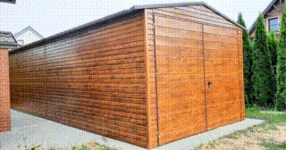 GARAŻ BLASZANY 3,4m x 7m poziom – dwuspad – Brama uchylna – jasny orzech drewnopodobny TS286 3,4×7