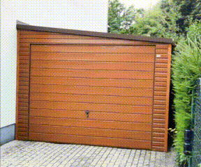 GARAŻ BLASZANY 3,5m x 6m poziom – spad w prawo – 2x Brama – jasny orzech – drewnopodobny TS287 3,5×6