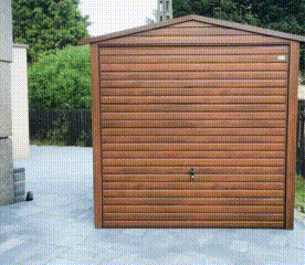 GARAŻ BLASZANY 3m x 5m poziom – dwuspad Brama uchylna – jasny orzech drewnopodobny TS267 3×5