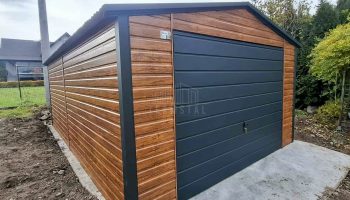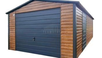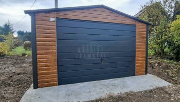 • szerokość : 4,5m • długość : 6m • dach : dwuspadowy kolor : antracyt mat 7016 • brama uchylna 300 x 200 cm kolor : antracyt mat 7016 • drzwi 90×200 cm kolor : antracyt mat 7016 • Przetłoczenie ścian T7 poziom kolor : jasny orzech • wysokość ścian bocznych : 213 cm • wysokość w szczycie : 250 cm • Konstrukcja – profil zamknięty ocynk • Zamek + Klucze • nity + wkręty w kolorze garażu • obróbki ścian • obróbki dachu Każdy produkt można dowolnie modyfikować aby dostosować do swoich indywidualnych potrzeb. Możliwa edycja :