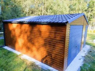 GARAŻ BLASZANY 5m x 6m poziom – dwuspad – Brama + drzwi + okno – blachodachówka – drewnopodobny + antracyt TS318 5×6