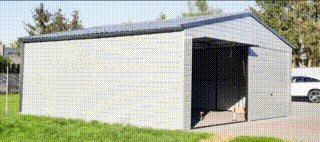 GARAŻ BLASZANY 6,5m x 6m poziom – dwuspad – 2x Brama uchylna – biały + antracyt TS292 6,5×6