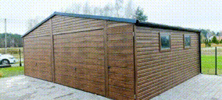 GARAŻ BLASZANY 7m x 6m dwuspad blachówka – Brama uchylna – ciemny orzech TS223