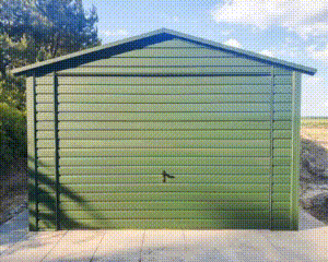 Garaż Blaszany 3,5x6m Brama Uchylna – Zielony – Dach Dwuspadowy TS727