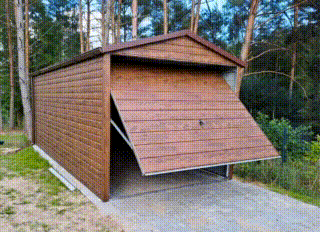 GARAŻ BLASZANY 3m x 6m poziom – dwuspad – Brama uchylna – ciemny orzech rynny 3×6 TS493