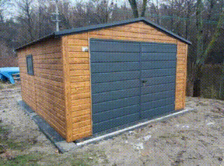 Garaż Blaszany 4×5 Brama – okno PCV – Jasny orzech – Drewnopodobny – dach dwuspadowy TS539