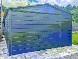 Garaż blaszany 4x6m – Brama uchylna – drzwi – antracyt – dach dwuspadowy TS765