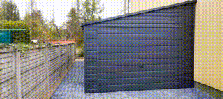 Garaż Blaszany 4x7m Brama uchylna – 2x okno – rynny – Antracyt – dach spad w bok TS836